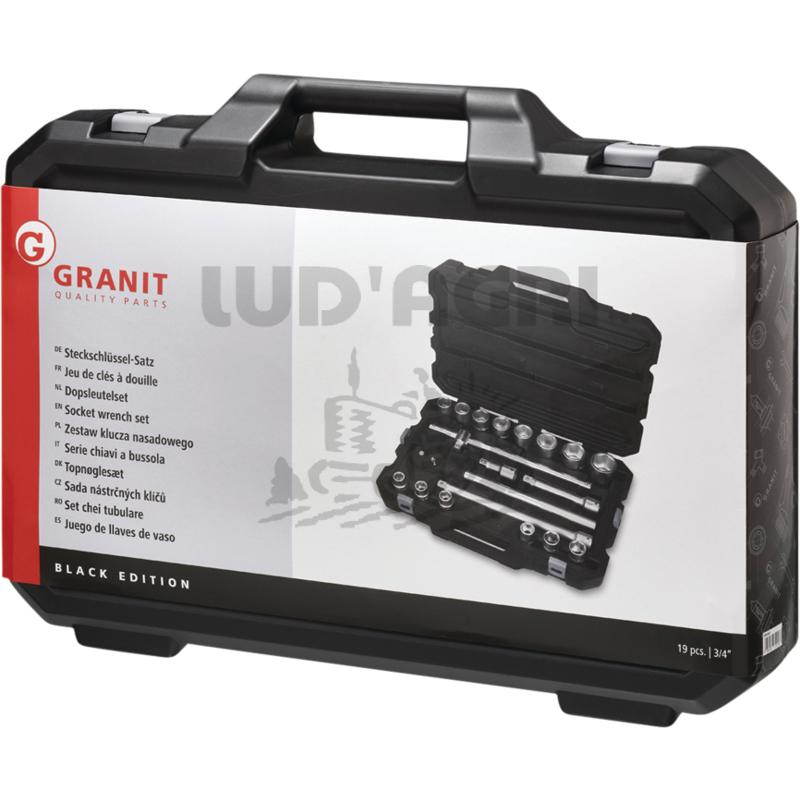 - Description : • dans un coffre à outils GRANIT BLACK EDITION de haute qualité et très solide avec verrous métalliques et système de rangement