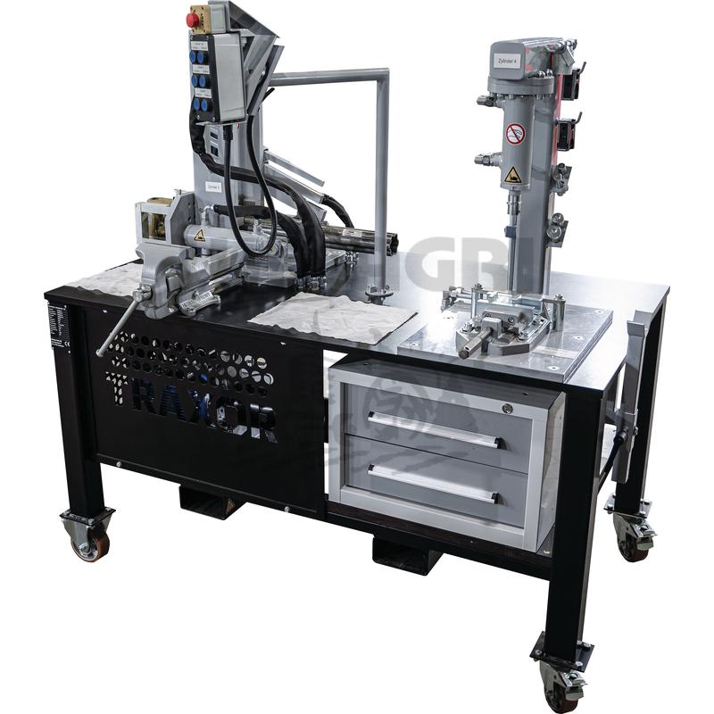 - Description : Le remanufacturing, la remise à neuf de composants usagés, est à la mode. Un démontage préalable devient un jeu d'enfant avec notre station de montage pour arbres de transmission. Elle vous permet de démonter les arbres de transmission de différentes tailles et de différents fabricants dans toutes leurs pièces et de les remettre en état avec succès. L'étau fourni peut être utilisé pour enlever ainsi que pour monter les goupilles de serrage. En outre, il permet de couper sur mesure de nouveaux tubes Profi l et des tubes de protection. Dans la première station – la tour de fourche à tube profilé – la fourche à tube professionnelle peut être démontée ou assemblée après une réparation réussie. La station fonctionne avec trois vérins à double effet. Les cylindres un et deux sont responsables de l'extraction et de la remontée de la fourche du tube professionnelle. Le cylindre trois sécurise le Profi l pendant le processus de traitement. À la deuxième station, à la tour à cardan, vous pouvez (dé)monter les croisillons. Ici aussi, un cylindre à double effet est utilisé. Le quatrième cylindre est chargé de presser et d'enfoncer les joints universels dans la fourche du tube professionnel. L'étau de la station deux est nécessaire pour maintenir et presser les paliers de croisillons. Le pupitre de commande peut être pivoté sur l'établi, mais il peut aussi être retiré et placé à côté des différentes stations. L'étiquetage de toutes les fonctions importantes garantit une manipulation sûre. Tous les outils manuels et électriques nécessaires sont utilisables pour les différentes tailles et les différents fabricants. En outre, il y a suffisamment de place pour les outils supplémentaires nécessaires. La station de montage est actionnée électriquement et hydrauliquement. La commande électrique est assurée par le boîtier de commande ainsi que par les distributeurs en 24 V. Les fonctions hydrauliques et l'alimentation des quatre cylindres sont assurées par l’unité d'entraînement. La pression de travail a été adaptée à toutes les stations de manière à permettre un travail efficace et sûr. L’unité d'entraînement fonctionne avec 1,5 kW et est alimentée par une tension nominale de 400V.